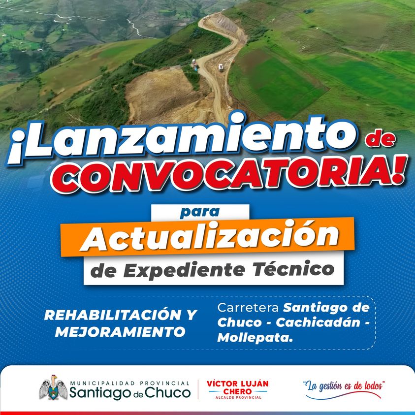 PROVIAS NACIONAL LANZÓ CONVOCATORIA PARA LA ACTUALIZACION DEL EXPEDIENTE TÉCNICO DEL PROYECTO REHABILITACIÓN Y MEJORAMIENTO DE LA CARRETERA SANTIAGO DE CHUCO – CACHICADÁN – MOLLEPATA”