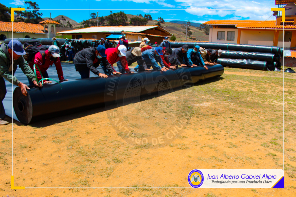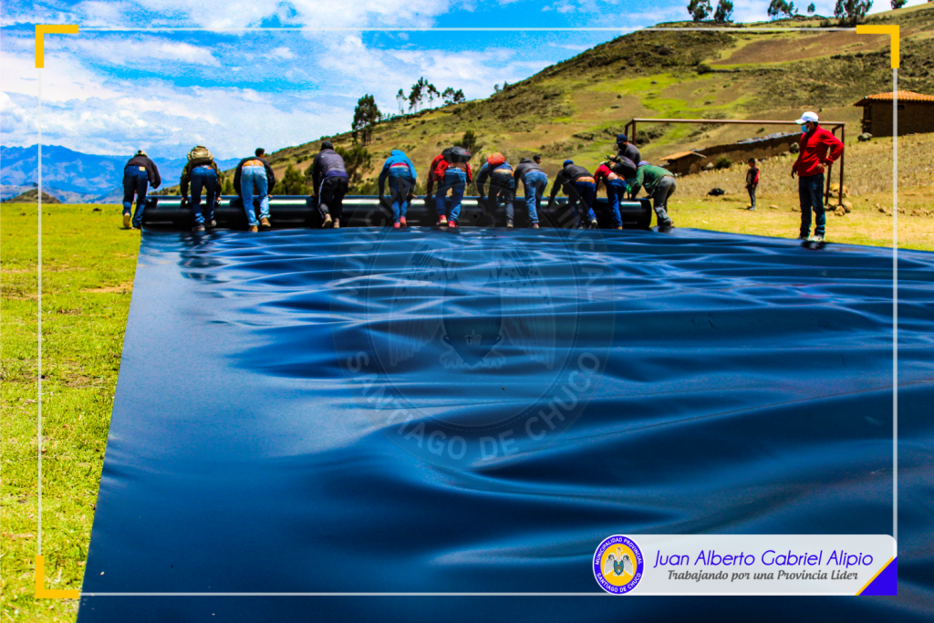 La geomembrana fue adquirida por la entidad edil y próximamente se logrará adquirir 200 mil metros cuadrados más para su colocación en unos 1,680 micro reservorios, lo cual permitirá alcanzar la meta propuesta por nuestra autoridad edil, implementar 5,000 micro reservorios en toda la provincia de Santiago de Chuco.